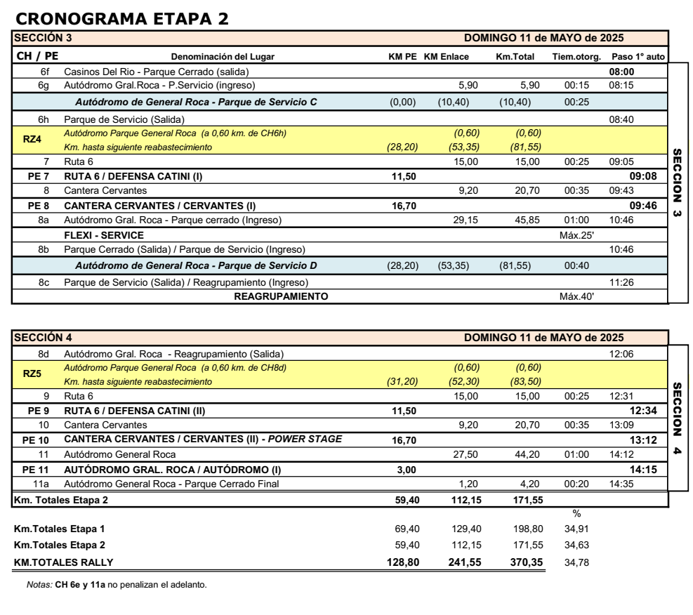 Entre ambos bucles habrá lexi Service en el Parque de Servicio del Autódromo General Roca, y también un reagrupamiento posterior.