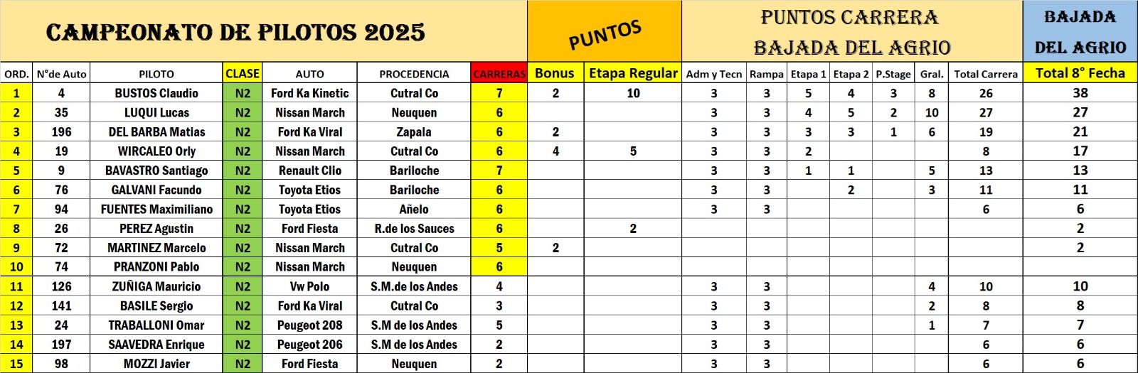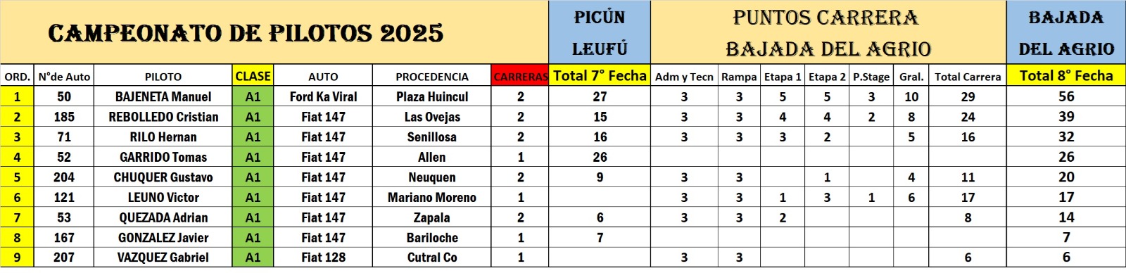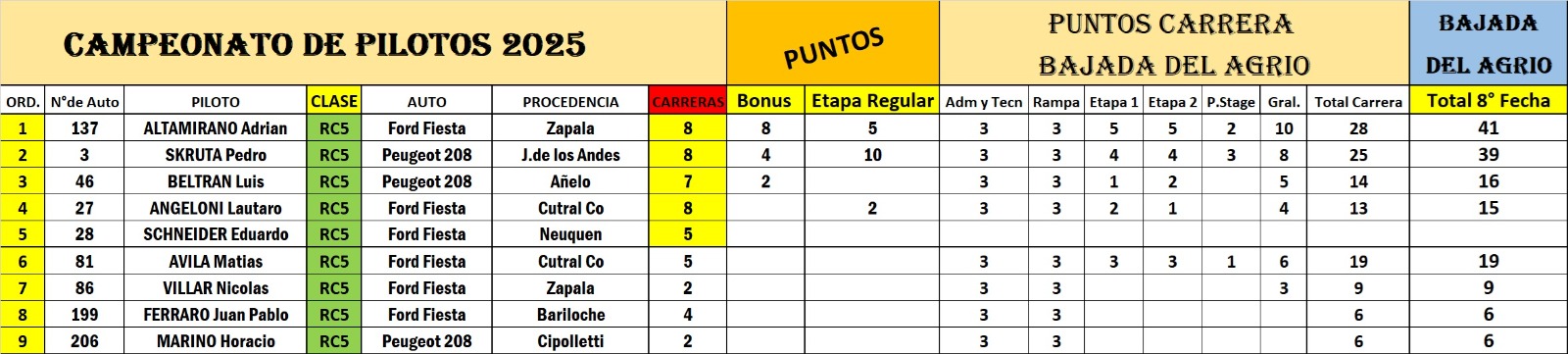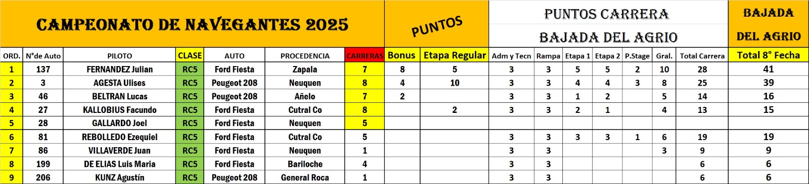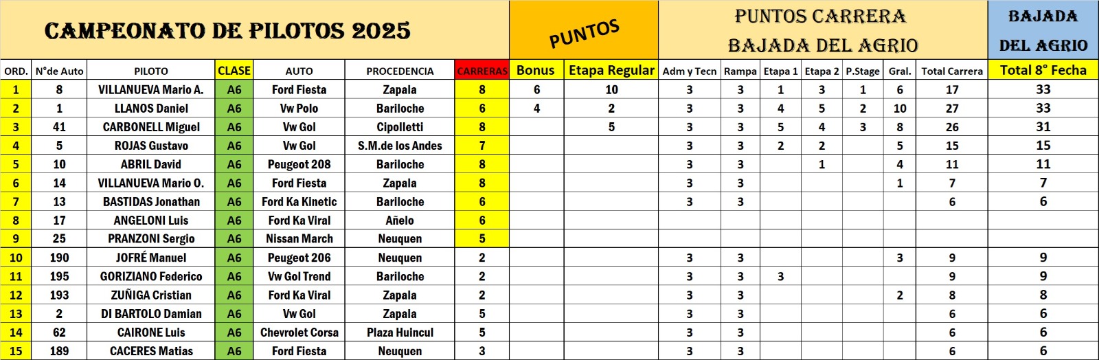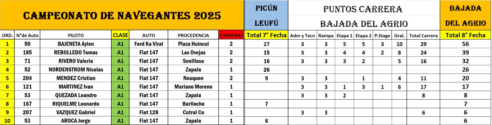 Por detrás de Daniel Llanos en la Clase A6, otro dos barilochenses están en la Copa de Campeones, David Abril que se ubica quinto con 11 puntos y Jonathan Bastidas que marcha séptimo con 6. En las demás divisionales, también con menos chances matemáticas ya que no tuvieron el arranque ideal en Bajada del Agrio, están Santiago Bavastro y Facundo Galvani en la Clase N2, ubicados quinto y sexto respectivamente, a más de 25 puntos del líder.