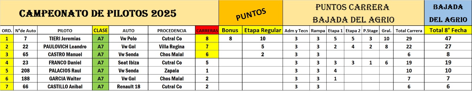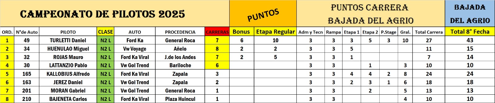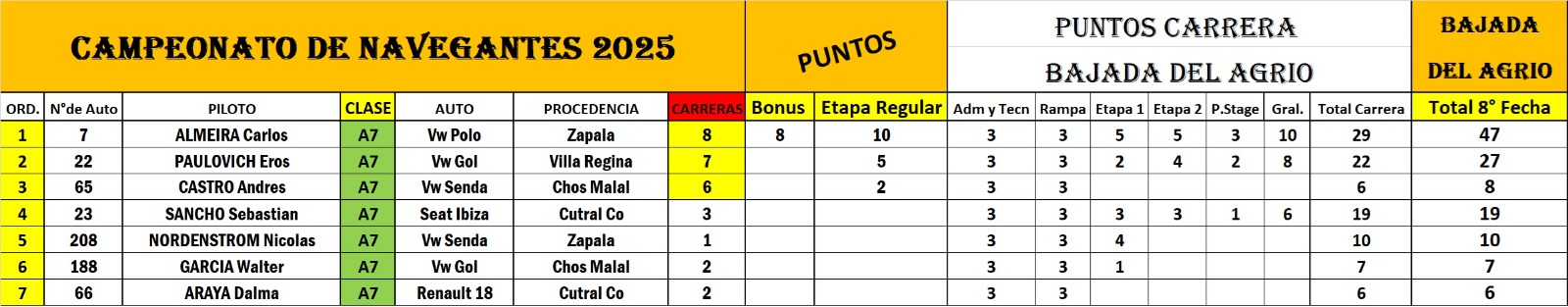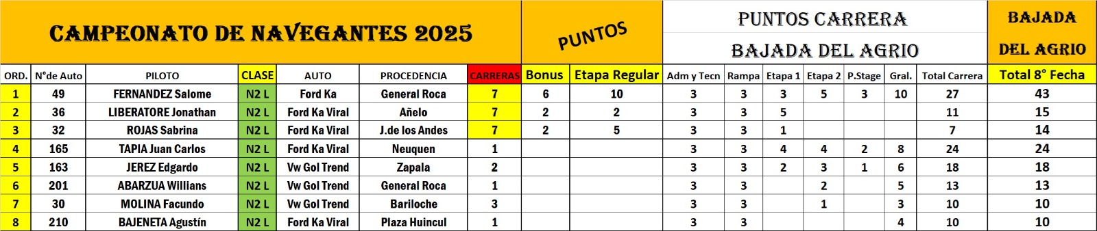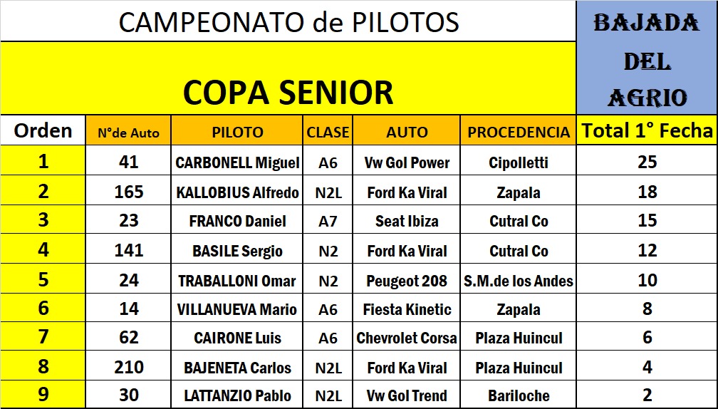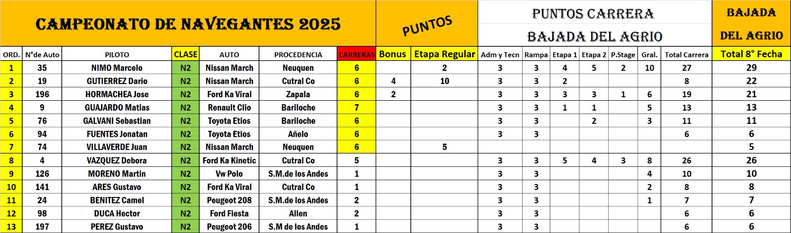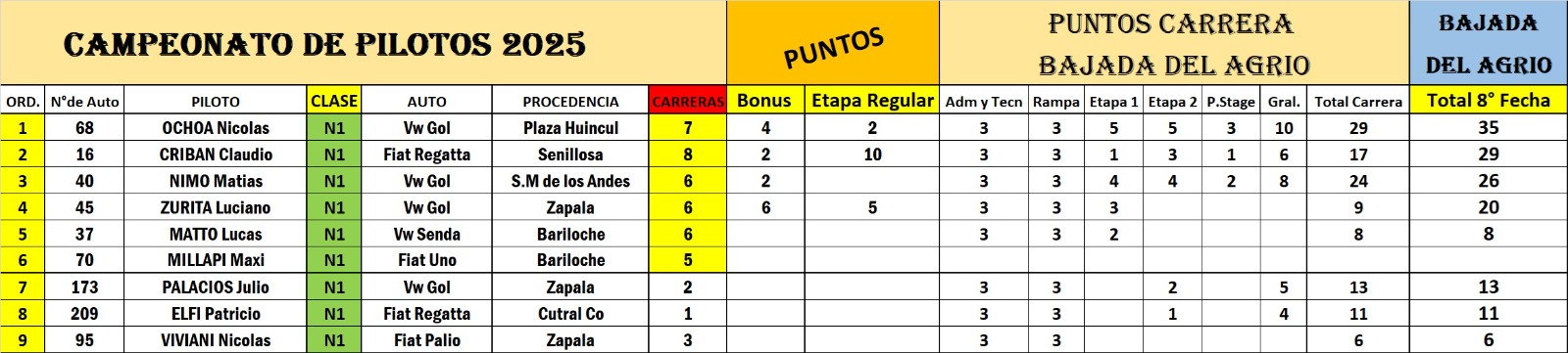 Por detrás de Daniel Llanos en la Clase A6, otro dos barilochenses están en la Copa de Campeones, David Abril que se ubica quinto con 11 puntos y Jonathan Bastidas que marcha séptimo con 6. En las demás divisionales, también con menos chances matemáticas ya que no tuvieron el arranque ideal en Bajada del Agrio, están Santiago Bavastro y Facundo Galvani en la Clase N2, ubicados quinto y sexto respectivamente, a más de 25 puntos del líder.