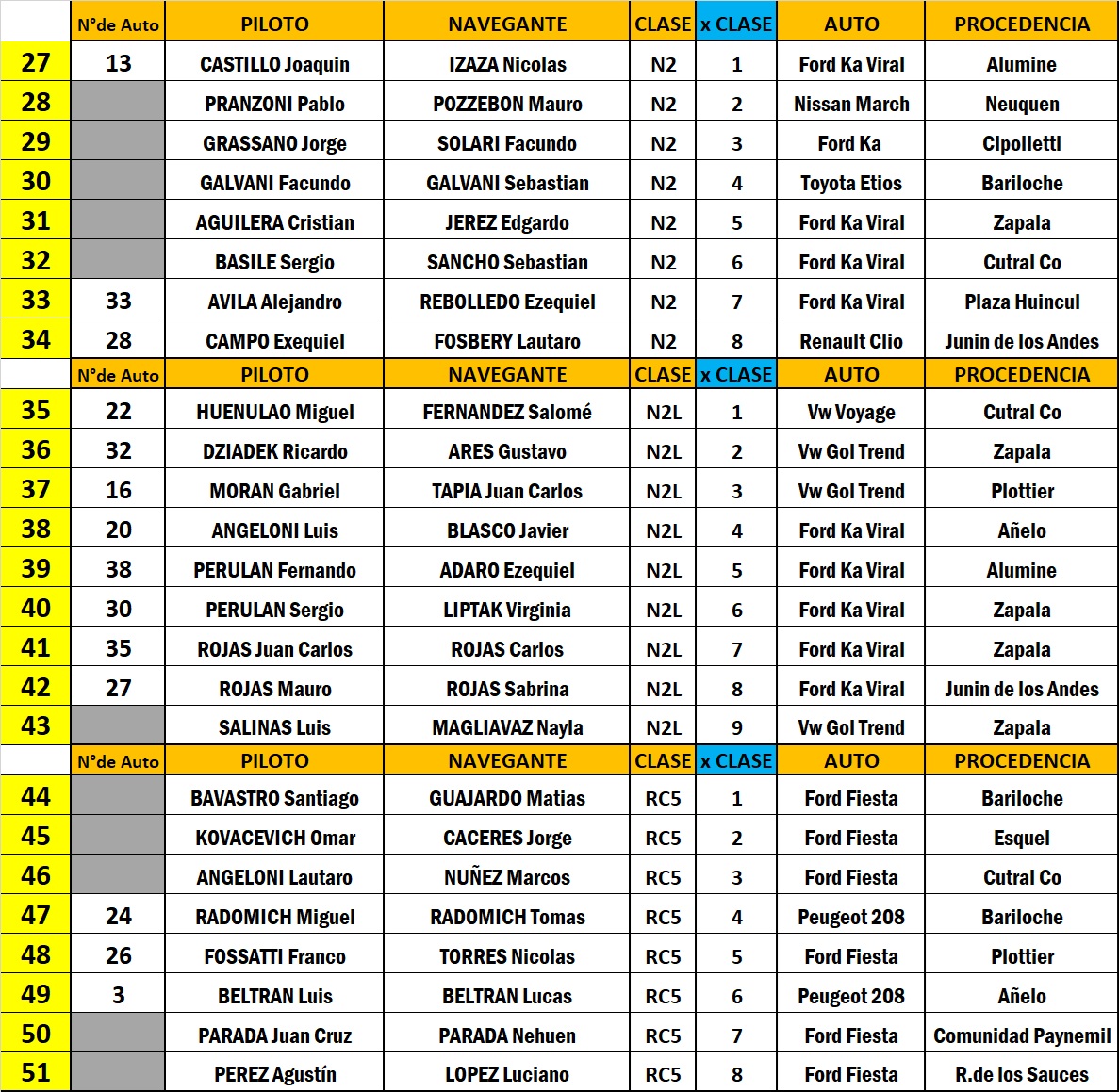 Luego de un inicio de año para el Rally Neuquino en Las Coloradas el mes pasado con 47 binomios, la tendencia se mantiene para la segunda fecha, ya que este martes por la tarde se cerró el registro de anotados para el Rally de Bajada del Agrio con un total de 51 duplas inscriptas y entre ellas, diez son de Bariloche, con algunos que repiten y varios que vuelven a la acción.