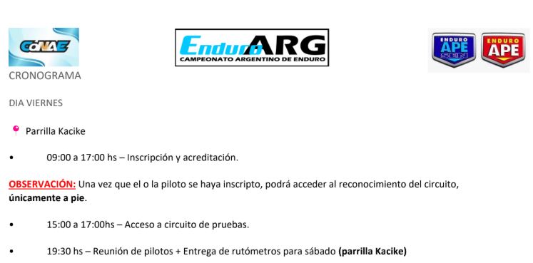 Desde este viernes con las acreditaciones comienza a desarrollarse una cita muy importante para el enduro patagónico en la vecina provincia neuquina, ya que el Enduro APE corre junto al Campeonato Nacional. Se espera más de 200 pilotos y varios de ellos son barilochenses.
