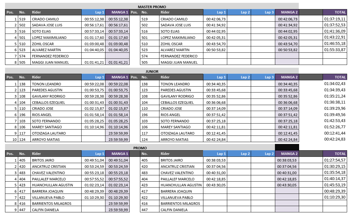 Según explicó el referente de la organización, Jorge Ramírez, en contacto con Mótor GP, el proveedor del servicio de cronometraje tuvo algunos inconvenientes y confusiones en la toma de tiempos, lo que generó resultados equivocados que debieron ser verificados, ya que figuraban pilotos en el podio porque tenían menos tiempo que otros, pero que habían abandonado o tenían menos vueltas.