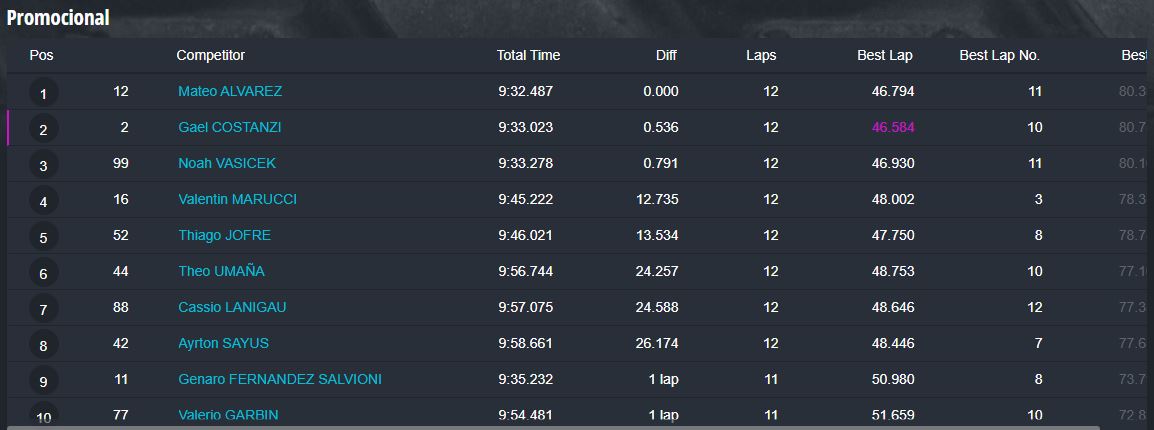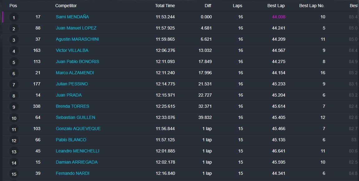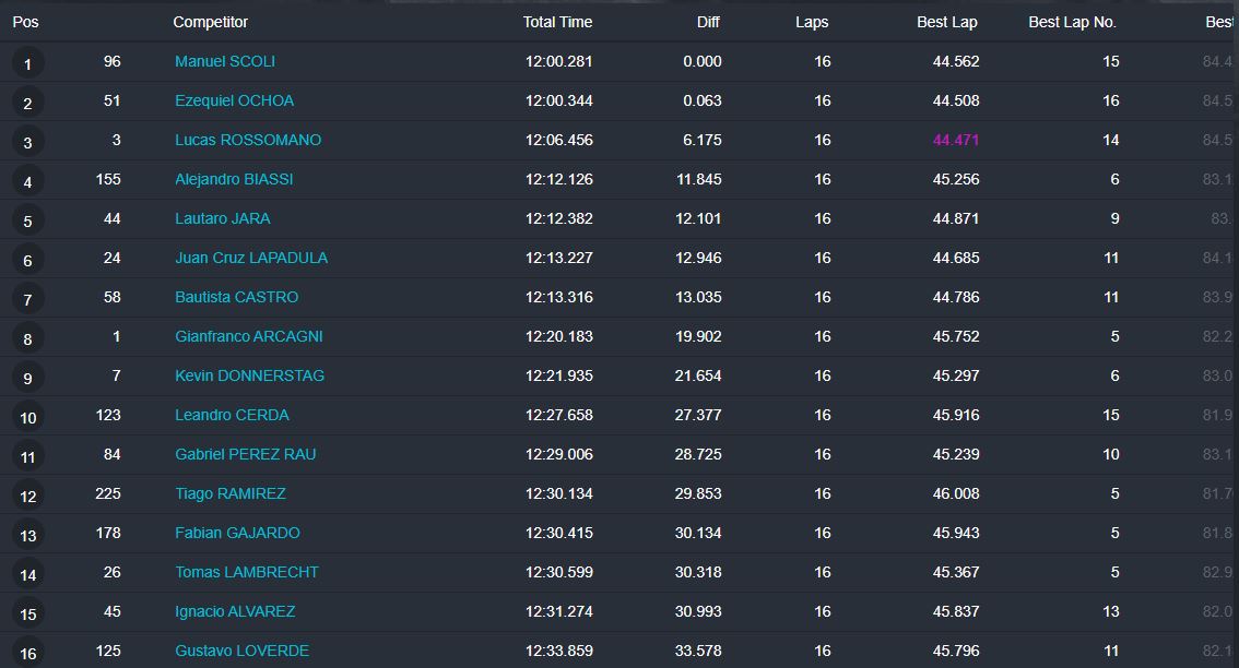 Con condiciones de lluvia el día sábado en clasificaciones, todo mejoró para el domingo en las prefinales y finales, pudiendo desarrollarse el evento como estaba previsto. Luciano Pessino logró el triunfo en la categoría mayor, Súper Sudam Senior, superando por tan solo 92 milésimas de segundo a Diego Dieguez, en tanto que Facundo Bustelo, con un tercer lugar, completó el podio de la principal.