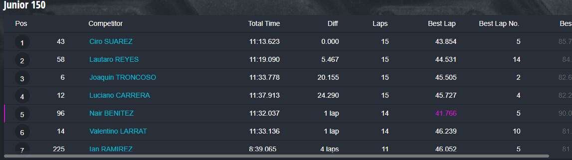 Además, dos barilochenses fueron parte de la cita, con Damián Arriegada que terminó en el puesto 14º en la final de 150 Pista y Nicolás Maggio que ocupó el lugar 25º en la concurrida Light 150.