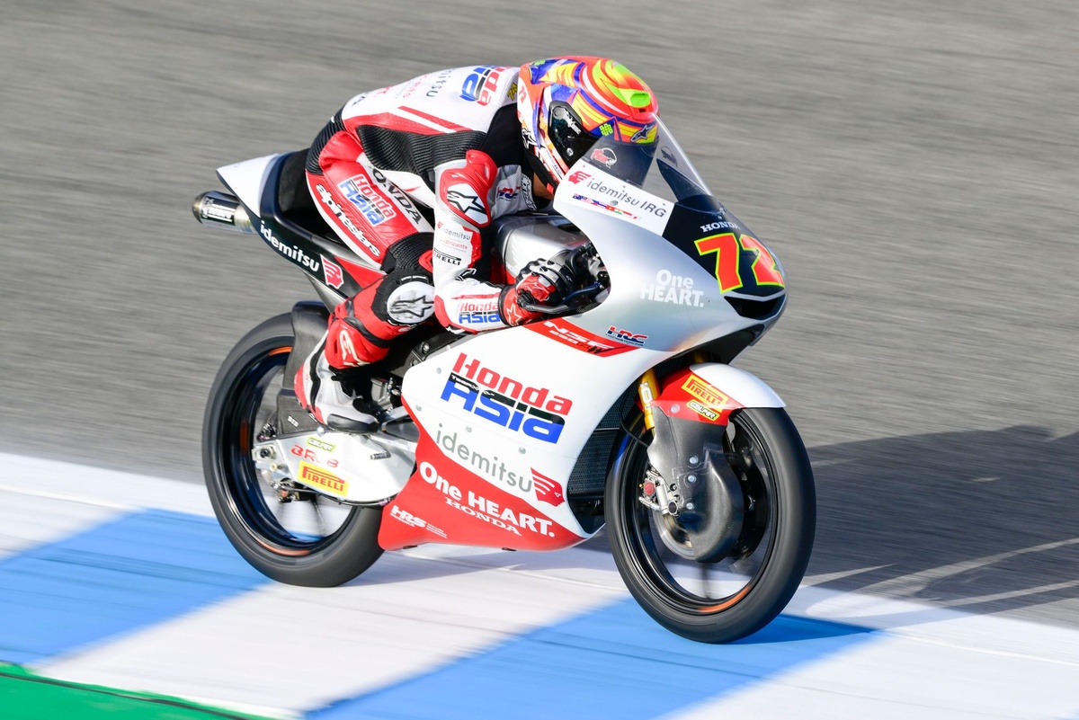 Con todo el pelotón de la categoría de las motos pequeñas completando el giro de formación previo a la estancia definitiva en la parrilla y al comienzo de la prueba de Moto3 en Sepang, José Anton...