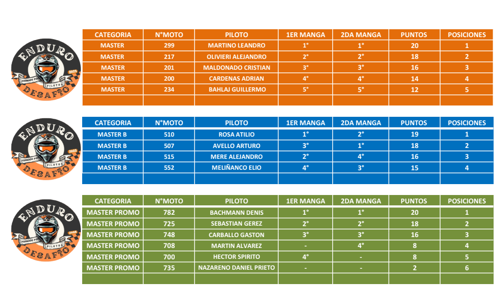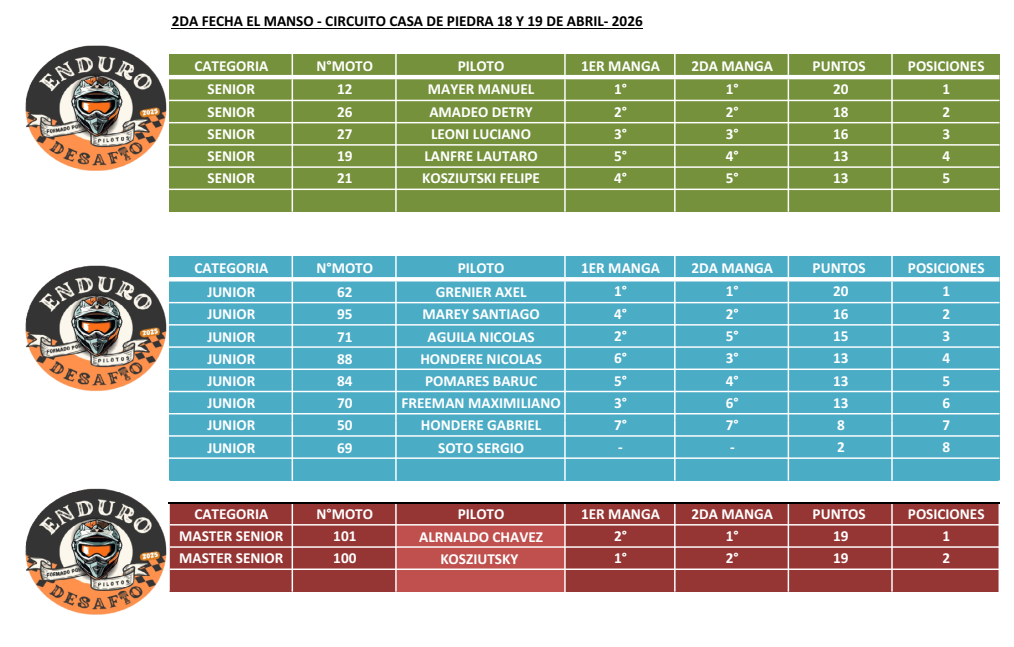 RESULTADOS FINALES – FECHA Nº 2 – ENDURO DESAFÍO: