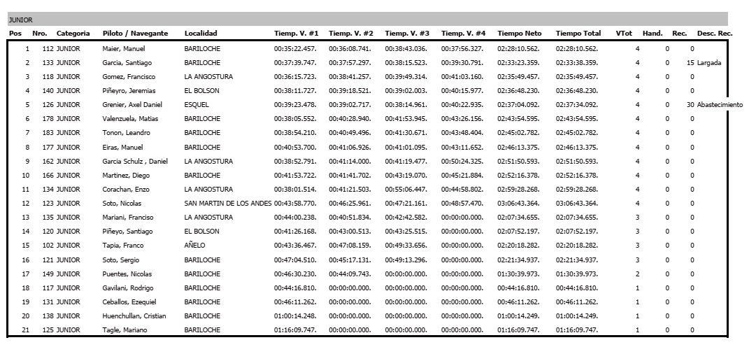 Como en Comallo y Bariloche, el destacado piloto de nuestra ciudad Juan Pablo Luzzardi fue el más rápido y se quedó con el triunfo en la categoría Senior, podio que se completó con Luciano Salinas de Villa la Angostura, Ariel Keller de El Bolsón, Lautaro Lanfré de El Manso y Amadeo Detry de Villa la Angostura.