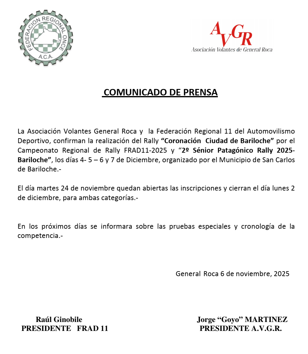 La Asociación de Volantes de General Roca emitió un comunicado a cerca de la fecha que se disputará del 4 al 7 de diciembre en nuestra ciudad.