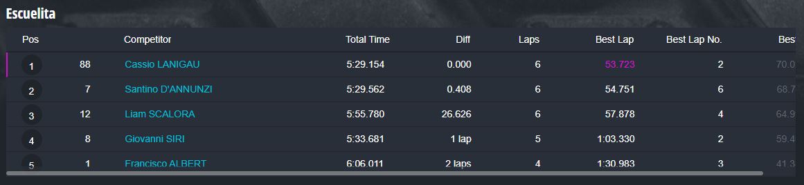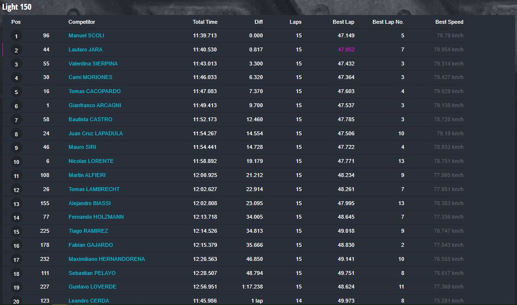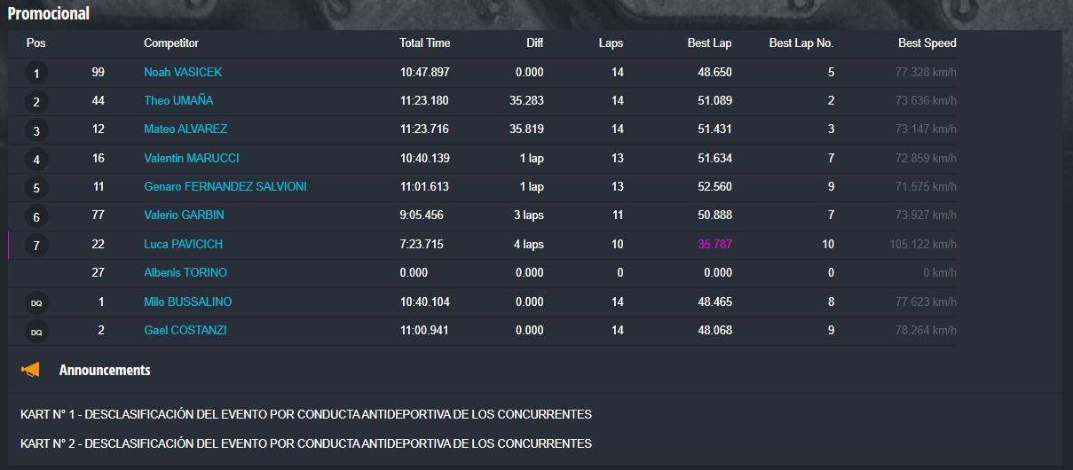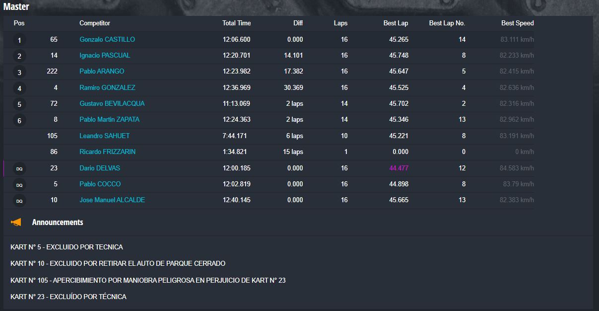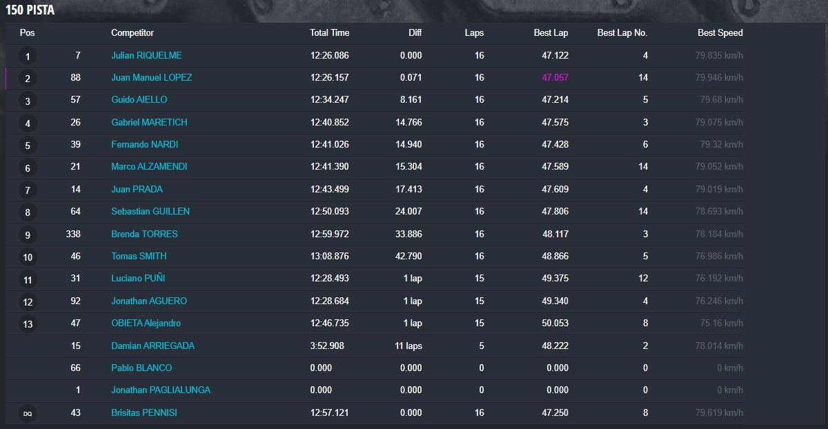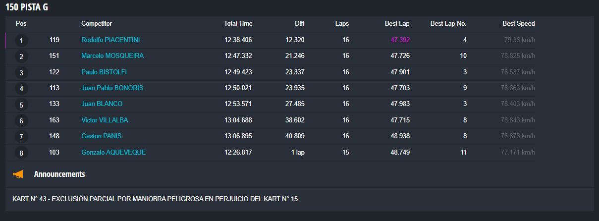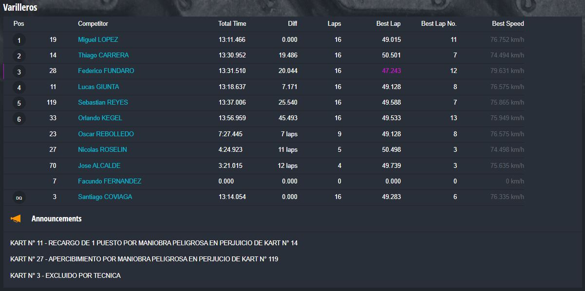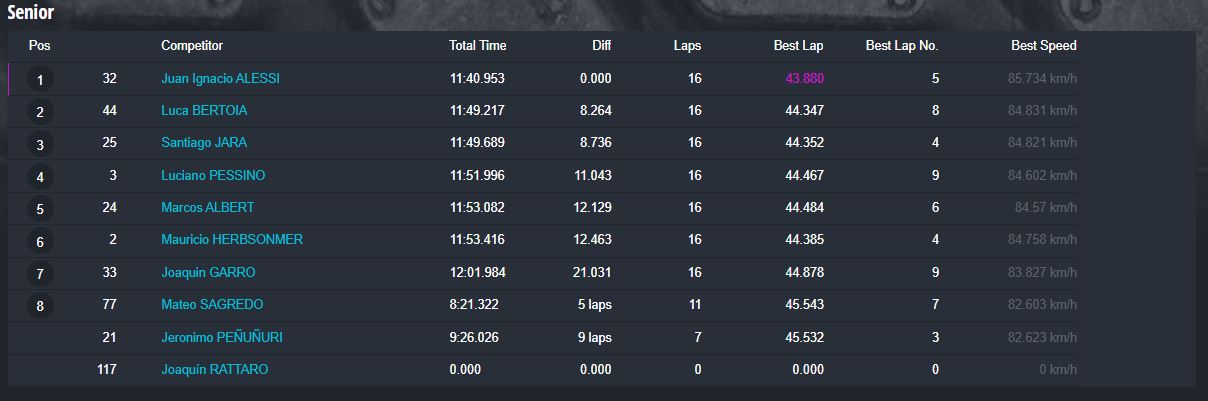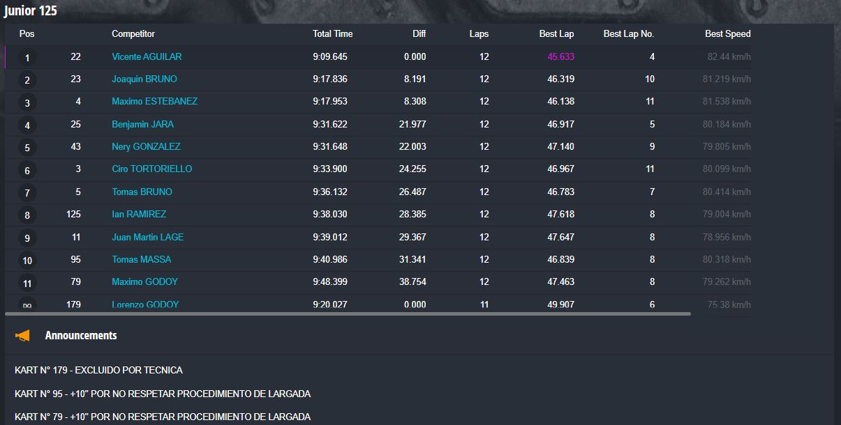 Tiempos completos en https://speedhive.mylaps.com/Events/2946102.