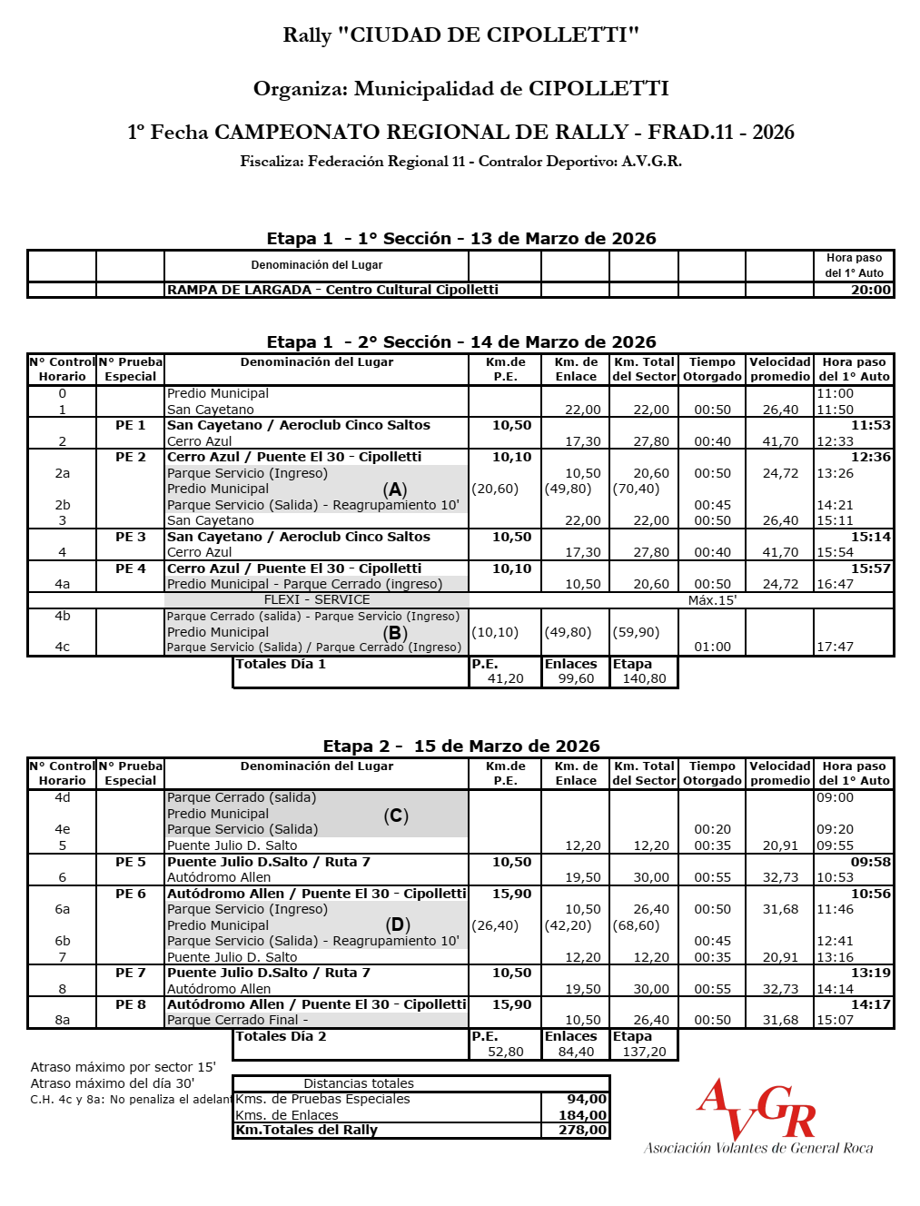 CRONOLOGÍA DE LA PRIMERA FECHA DEL RALLY REGIONAL