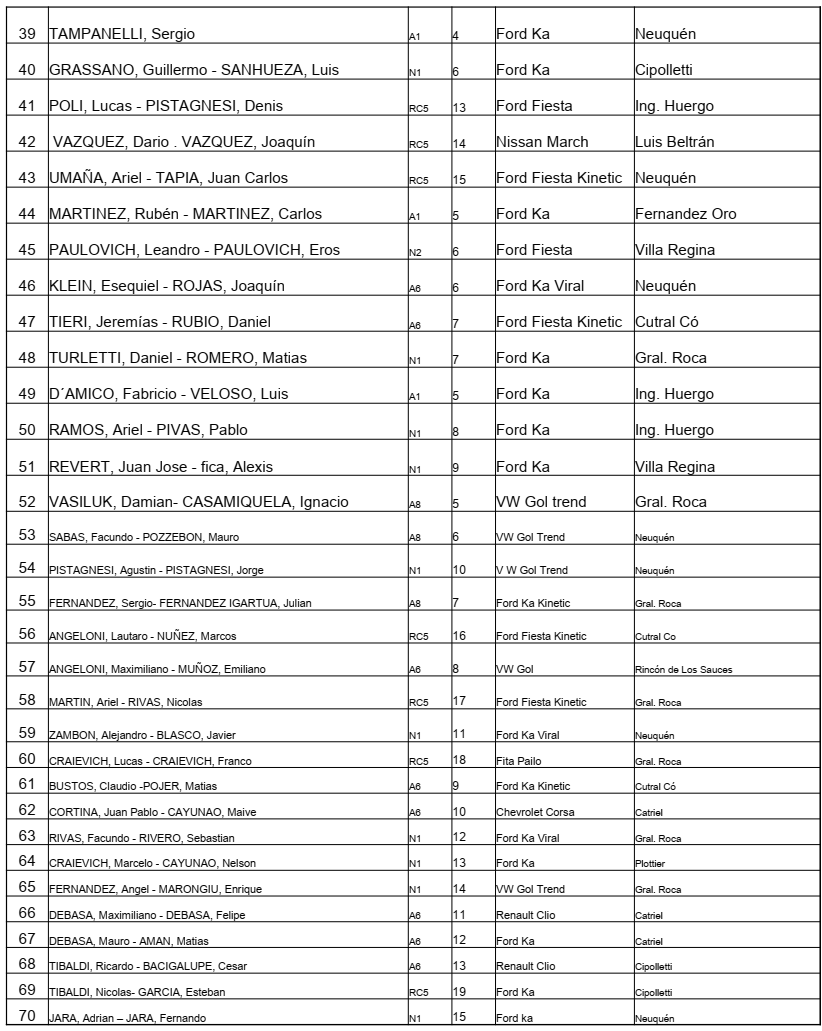 Al cierre de las inscripciones de este jueves, un total de 70 binomios se anotaron para ser parte de la competencia, número más que aceptable, teniendo en cuenta que durante el 2025 el Regional promedió unos 40 ó 50 autos por fecha (salvo en Bariloche que superó los sesenta) y teniendo un cuenta que los inicios de año suelen tener menor convocatoria que el resto del certamen, sin ir más lejos el Neuquino arrancó el fin de semana pasado con 47 anotados.