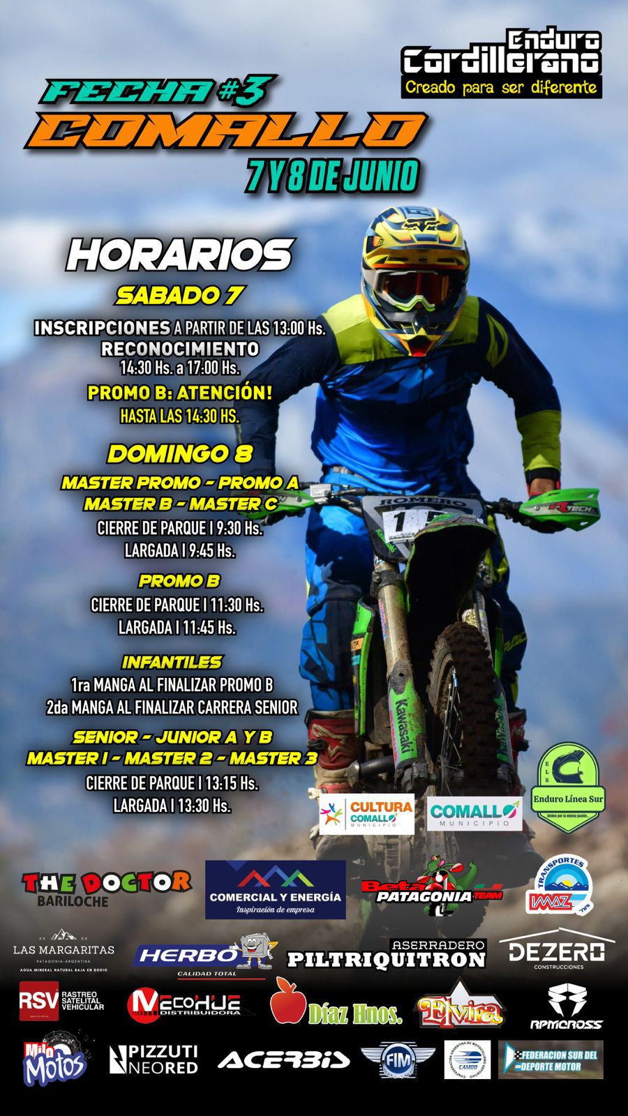 Va quedando todo preparado en Comallo para que este sábado 7 y domingo 8 de junio, los enduristas de nuestra zona se den cita para desarrollar la tercera fecha del Enduro Cordillerano y la cuarta del Enduro Línea Sur, siendo la primera vez que ambos campeonatos comparten escenario. Eso y otros condimentos hacen que esta fecha sea especial, ya que además para los pilotos del “Cordi” la jornada entregará puntaje extra.